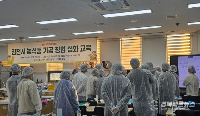 경북팩트뉴스 남유신 기자 | 김천시는 12월 19일 오후, 김천시농업기술센터 농촌생활교육관 조리실습실에서 ‘2025년 김천시 농식품 가공 창업 심화 교육’ 수료식을 성황리에 개최했다.
