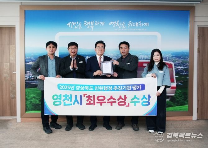 경북팩트뉴스 남유신 기자 | 영천시는 경상북도가 실시한 ‘2025년 경상북도 민원행정 추진실적 평가’에서 최우수상을 수상했다고 밝혔다.