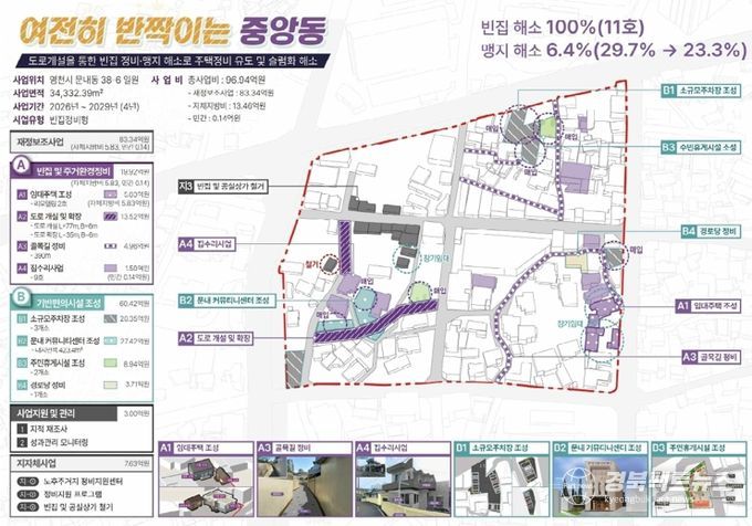 이번 사업은 빈집 문제 완화와 지역 활력 회복을 목표로, 2026년부터 4년간 총 96억 9,400만원(국비 50억원, 도비 8억 3,400만원, 시비 38억 4,600만원, 민간 1,400만원)의 예산을 투입해 노후주택 정비, 기반시설 확충, 주민편의시설 조성 등을 진행할 예정이다.