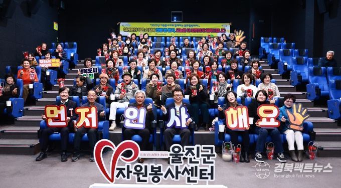경북팩트뉴스 남유신 기자 | 울진군종합자원봉사센터는 지난 12월 16일 울진군 관외 재난·재해 현장에서 활동한 자원봉사자들과 각 분야에서 재능나눔 활동을 이어온 자원봉사자 80명을 초청해‘울진군 자원봉사자와 함께하는 문화힐링데이’를 진행했다.