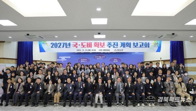 경북팩트뉴스 남유신 기자 | 청도군은 청도군수 주재로 부군수, 국장, 실과소장 및 팀장 등 120여 명이 참석한 가운데, 지난 23일 군청 대회의실에서 2027년도 국도비 확보 추진 계획 보고회를 가졌다.