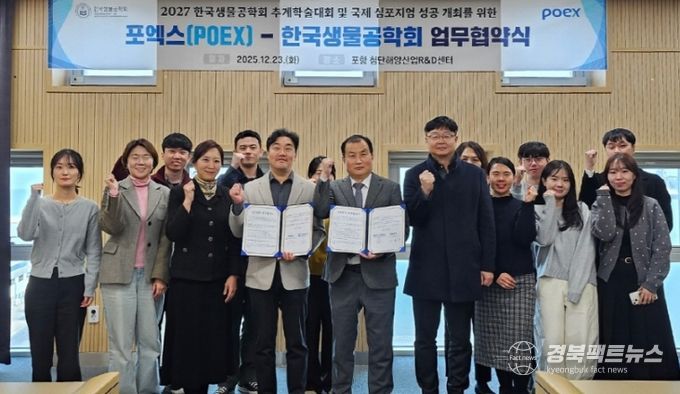 경북팩트뉴스 남유신 기자 | (재)포항국제전시컨벤션센터는 지난 23일, 한국생물공학회와 ‘2027년 추계학술대회 및 국제심포지엄’의 성공적인 개최를 위한 업무협약(MOU)을 체결했다.