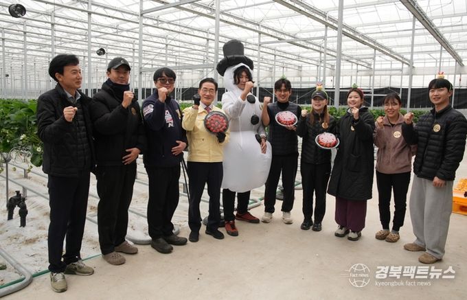 경북팩트뉴스 남유신 기자 | 영천시는 지난 24일 지역특화 임대형 스마트팜을 방문해 딸기 수확 현장을 둘러보고, 청년 농업인들을 격려했다.