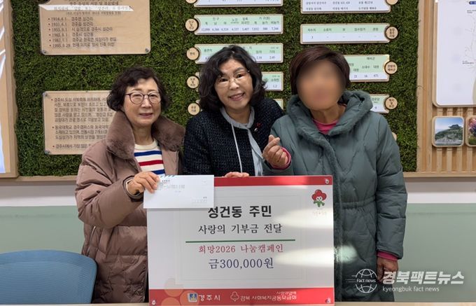 장세용 성건동장은 “지난 봄 산불 피해 이웃을 위해 전해주신 정성이 다시 이어져 더욱 뜻깊다”며 “어르신의 따뜻한 마음이 가장 필요한 이웃들에게 온전히 전해질 수 있도록 경주시가 책임 있게 전달하겠다”고 말했다.