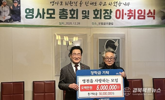 경북팩트뉴스 남유신 기자 | 영천시는 지난 28일 영사모(영천을 사랑하는 모임)가 500만원, 29일에는 신녕농업협동조합 500만원, 신녕면 이장협의회 102만원의 장학금을 영천시장학회에 기탁했다고 밝혔다.