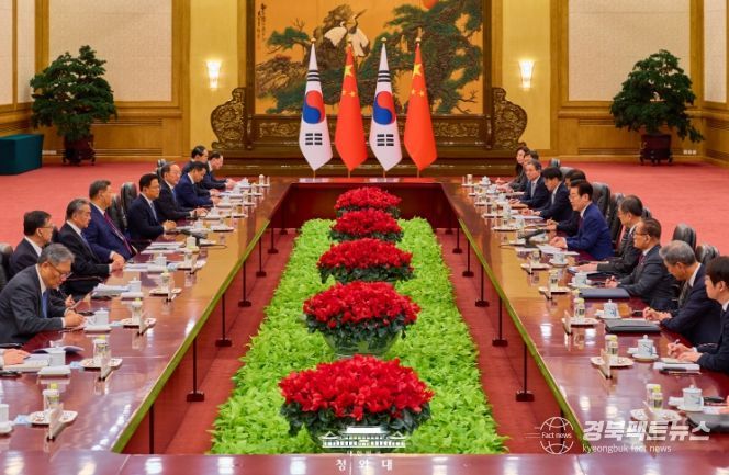 경북팩트뉴스 황혜경 기자 | 중국을 국빈 방문 중인 이재명 대통령은 5일(현지시간) 오후 베이징에서 시진핑 국가주석과 정상회담을 갖고 한중 관계 발전 방향과 주요 현안을 폭넓게 논의했다.