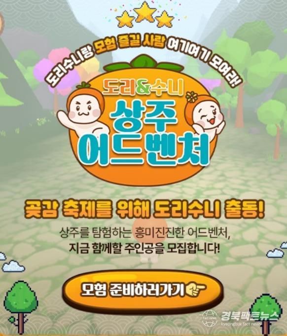 경북팩트뉴스 남유신 기자 | 상주시는 2026 상주곶감축제를 앞두고, 축제를 보다 색다르고 흥미롭게 즐길 수 있는 체험형 온라인 게임 콘텐츠‘도리와 수니의 상주 어드벤처’를 곶감축제 공식 홈페이지를 통해 선보였다.