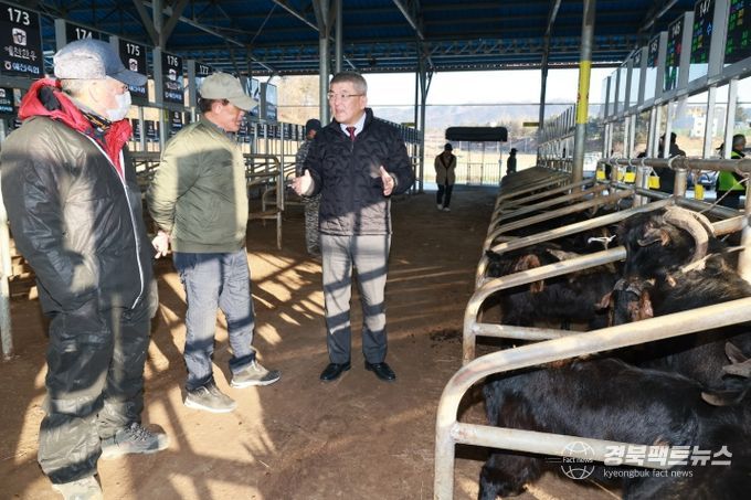 이날 현장에서 김학동 군수는 염소의 발육 상태와 경매 진행 과정을 꼼꼼히 살피며 “공정하고 원활한 거래가 이루어질 수 있도록 앞으로도 힘써달라”고 현장 관계자들에게 당부했고, “제도 변화로 어려움을 겪는 축산농가에 실질적인 대안이 될 수 있도록 육성 대책을 적극 추진하겠다”고 말했다.
