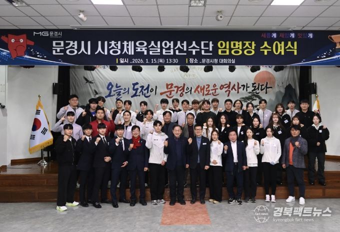 경북팩트뉴스 남유신 기자 | 문경시청 실업선수단 신규 선수 임명장 수여식을 15일 시청 대회의실에서 개최하며 새로운 도약을 알렸다.