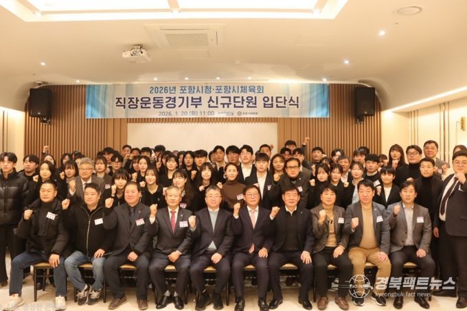 경북팩트뉴스 남유신 기자 | 포항시와 포항시체육회는 20일 라메르웨딩에서 ‘2026년 포항시 직장운동경기부 입단식’을 개최했다.
