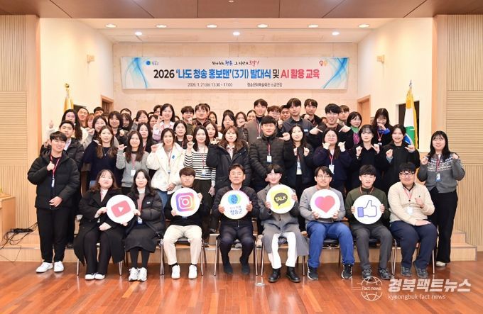 경북팩트뉴스 남유신 기자 | 청송군은 직원들이 직접 SNS 홍보에 참여하는 2026년 ‘나도 청송 홍보맨’ 발대식 및 AI 활용 교육을 21일 청송문화예술회관 소공연장에서 개최했다.