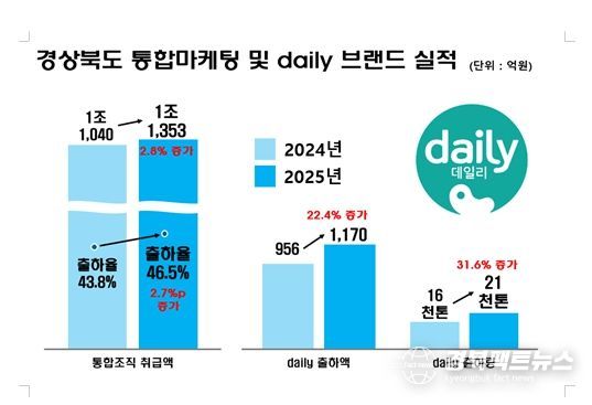 특히 경북 과수 통합브랜드 ‘daily(데일리)’는 전년 대비 22.4% 증가한 1,170억 원의 매출을 기록하며 브랜드 도입 이후 사상 최대 실적을 달성했다.