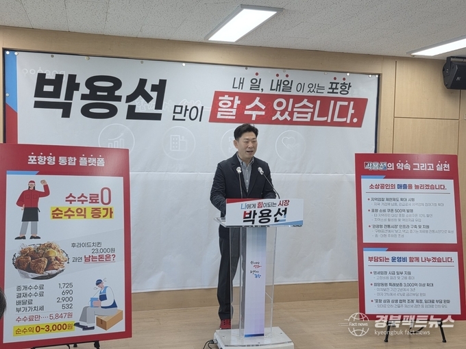 경북팩트뉴스 남유신 기자 | 박용선 포항시장 출마예정자가 소상공인과 자영업자의 고질적인 경영 부담을 구조적으로 해결하겠다며 ‘수수료 제로, 포항형 통합 플랫폼 구축’을 핵심 공약으로 제시했다.