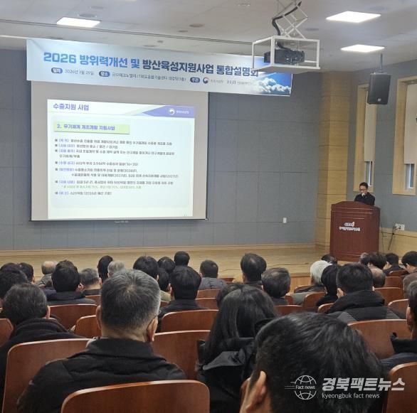 시는 지난 29일 구미 금오테크노밸리 IT의료융합기술센터 1층 대강당에서 '2026년 방위력개선 및 방산육성지원사업 통합설명회'가 개최됐다고 밝혔다.