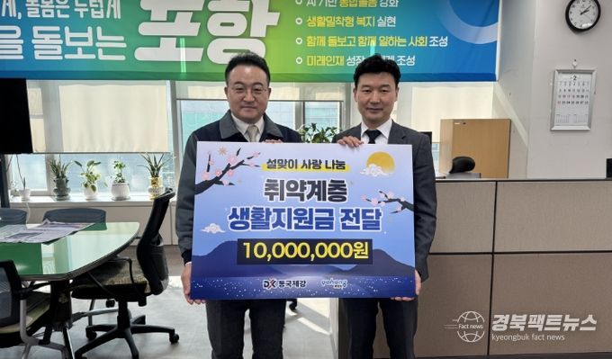 경북팩트뉴스 남유신 기자 | 포항시는 2일 동국제강이 설 명절을 맞아 지역 소외계층을 지원하기 위해 포항사랑상품권 1,000매(1,000만 원 상당)를 기탁했다고 밝혔다.