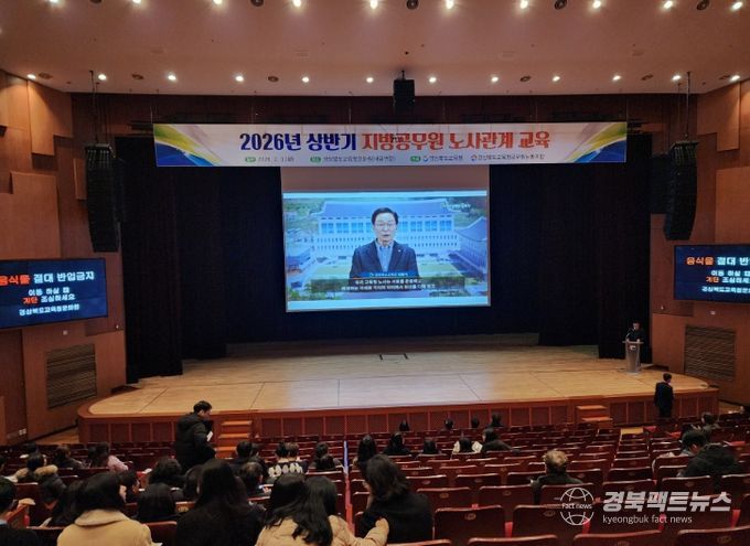 경북팩트뉴스 남유신 기자 | 경북교육청은 3일 포항시에 있는 경상북도교육청문화원에서 6급 이하 일반직 공무원 580여 명을 대상으로 ‘2026년 상반기 지방공무원 노사관계 교육’을 실시했다고 밝혔다.