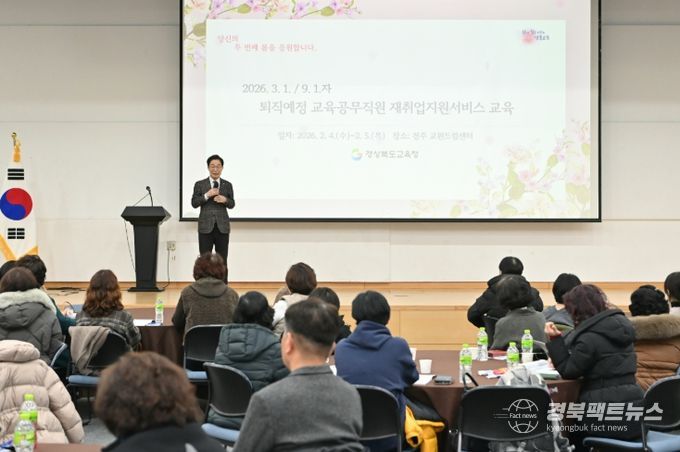 경북팩트뉴스 남유신 기자 | 경북교육청은 4일부터 5일까지 1박 2일간 경주 교원드림센터에서 2026년 3월 1일과 9월 1일 퇴직 예정인 교육공무직원 213명을 대상으로 재취업지원서비스 진로설계교육을 실시했다고 밝혔다.