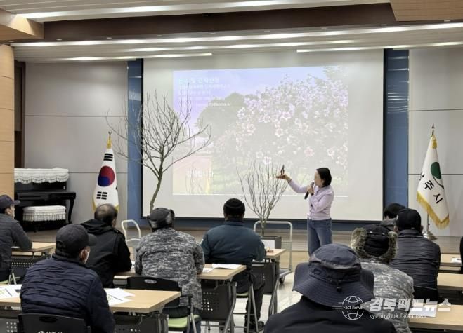 경북팩트뉴스 남유신 기자 | 상주시는 2월 4일 상주시청 대회의실 및 현장 일원에서 녹지조경분야 근로자 및 관계 부서 직원을 대상으로 녪년도 무궁화 가로수 전지·전정 교육’을 실시했다.