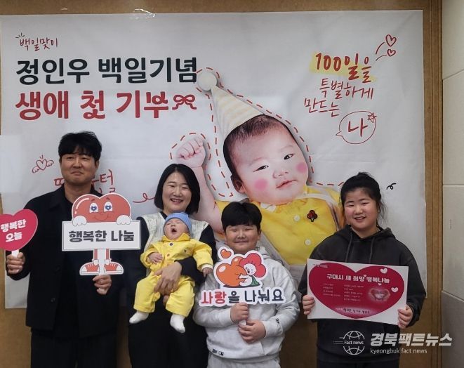 경북팩트뉴스 조현묵 기자 | 구미시는 지난 4일 고아읍에 거주하는 정광재·최성미 부부로부터 셋째 자녀의 백일을 기념한 ‘새 희망 행복나눔’ 성금 300만 원을 기탁받았다.