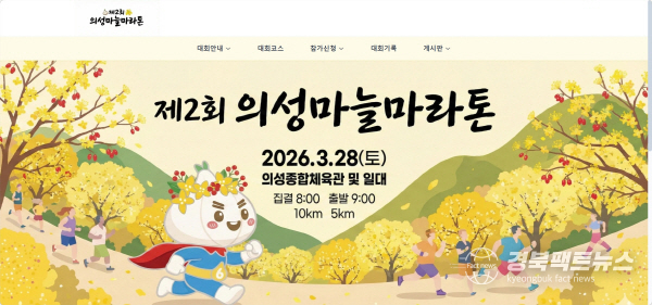 경북팩트뉴스 남유신 기자 | 제2회 의성마늘마라톤대회가 오는 3월 28일 의성군 의성종합체육관 일원에서 개최된다.