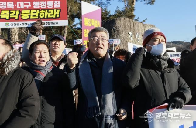 예천·안동 지역 주민들은 2월 9일 오전 8시, 경상북도청 동문에서 ‘대구·경북 졸속 행정통합 규탄 집회’를 개최하고, 행정통합 논의 과정에서 경북 북부권의 역할과 위상이 명확히 보장되지 않은 통합은 불가하다는 입장을 공동으로 표명했다.