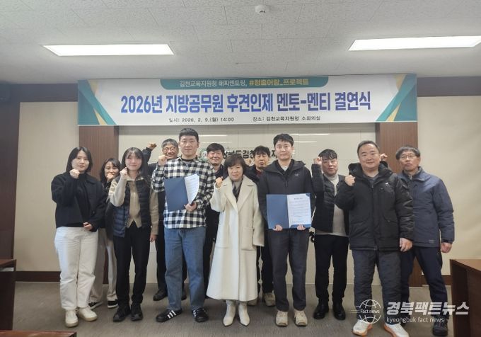 경북팩트뉴스 남유신 기자 | 경상북도김천교육지원청은 2월 9일 오후2시 김천교육지원청 소회의실에서 신규 공무원과 선배 공무원 12명이 참석한 가운데 지방공무원 후견인제 멘토-멘티 결연식을 개최했다.