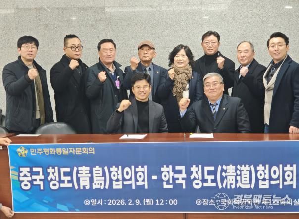 경북팩트뉴스 남유신 기자 | 청도군은 지난 9일 민주평화통일자문회의 청도군협의회 주관으로 국회의원회관 제1소회의실에서 중국 청도(靑島)협의회와 자매결연식을 개최했다고 밝혔다.