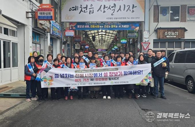 예천군 관계자는 “설 명절을 앞두고 군민의 생명과 재산을 보호하기 위해 민·관이 함께하는 안전점검 활동을 추진했다”며, “앞으로도 일상 속 안전 문화가 정착될 수 있도록 지속적인 교육 및 캠페인과 점검 활동을 이어가겠다”고 말했다.