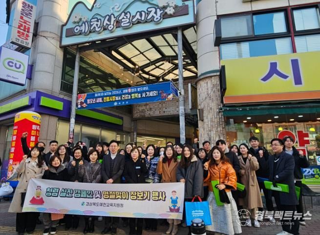 경북팩트뉴스 남유신 기자 | 경상북도예천교육지원청은 2월 12일 예천읍 상설시장에서 직원들과 함께 설 맞이 전통시장 장보기 행사를 실시했다.