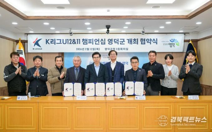 경북팩트뉴스 남유신 기자 | 영덕군과 한국프로축구연맹, 영덕군체육회, 영덕군축구협회는 영덕군에서 3년간 개최되는 ‘K리그 유스(U-12&11) 챔피언십’의 성공적인 개최를 위해 지난 12일 영덕군청 제1회의실에서 협약식을 개최했다.