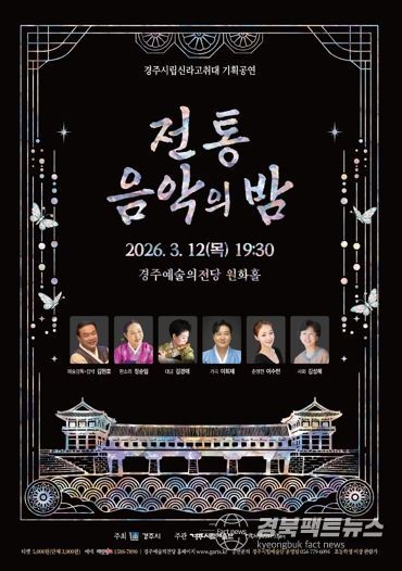 경북팩트뉴스 이영하 기자 | 경주시립신라고취대가 오는 3월 12일 오후 7시 30분 경주예술의전당 원화홀에서 2026년 첫 기획공연 ‘전통음악의 밤’을 선보인다.
