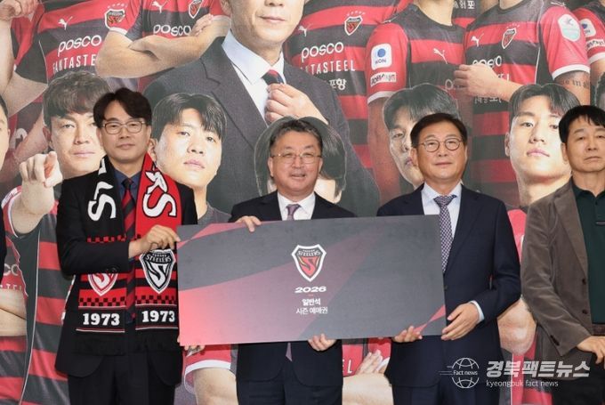 경북팩트뉴스 남유신 기자 | 포항시는 23일 시청 로비에서 ‘2026년 포항스틸러스 시즌예매권 판매 행사’가 성황리에 열렸다.