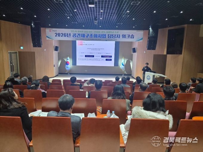 경북팩트뉴스 남유신 기자 | 경북교육청은 26일 본청 행복지원동 연화관에서 2026년 공간재구조화 사업 대상교로 선정된 학교 관계자와 교육지원청 담당자, 사전 기획가, 현장지원단 등 60여 명이 참석한 가운데 ‘2026년 공간재구조화 사업담당자 워크숍’을 개최했다고 밝혔다.