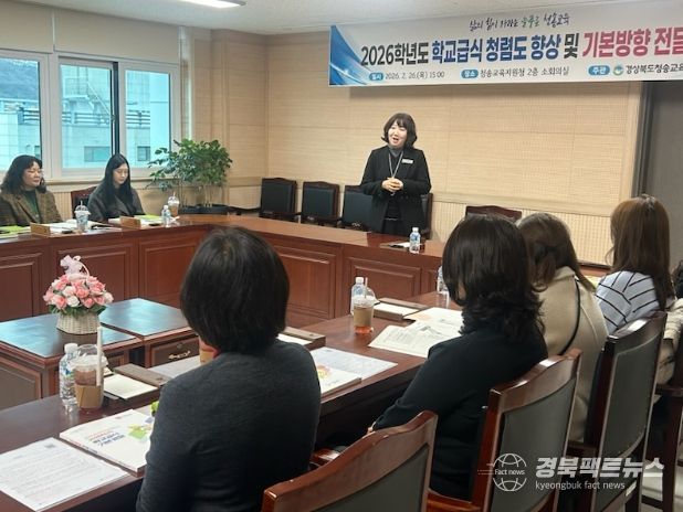 경북팩트뉴스 남유신 기자 | 경상북도청송교육지원청은 26일 오후 3시 청송교육지원청 2층 소회의실에서 관내 영양교사 및 영양사 13명을 대상으로 '2026학년도 학교급식 청렴도 향상 및 기본방향 전달연수'를 실시했다.
