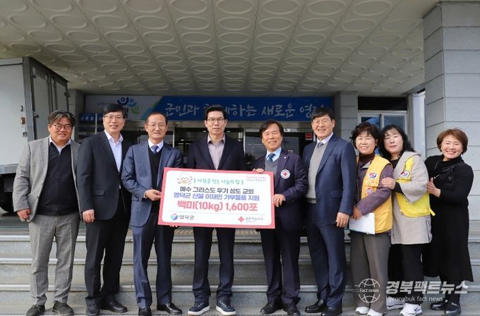 경북팩트뉴스 남유신 기자 | 예수그리스도 후기 성도 교회와 대한적십자사 경상북도지사가 지난해 3월 발생한 경북산불의 피해로 어려움을 겪고 있는 영덕군 이재민들을 위해 지난 25일 6,400만 원 상당의 10kg 들이 쌀 1,600포를 기부하는 전달식을 가졌다.