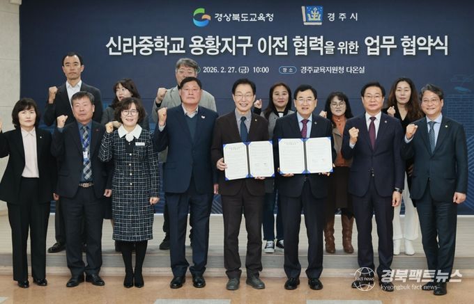 경주시는 경상북도교육청과 ‘신라중학교 용황지구 이전을 위한 업무협약’을 체결했다고 2일 밝혔다.
