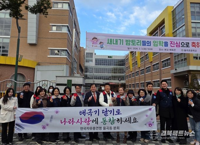 경북팩트뉴스 남유신 기자 | 한국자유총연맹 율곡동위원회(회장 김경석, 정수연)는 새 학기를 맞이한 학생들을 응원하기 위해 율곡초등학교에서‘태극기 키링 나눔 행사’를 개최했다.