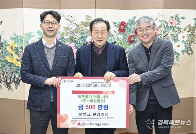 이영우 iM뱅크 문경지점장은 “지역 금융기관으로서 어려운 이웃들에게 조금이나마 힘이 되고자 이번 나눔을 마련했다”며 “앞으로도 지역사회와 함께하는 다양한 사회공헌 활동을 이어가겠다”고 말했다.