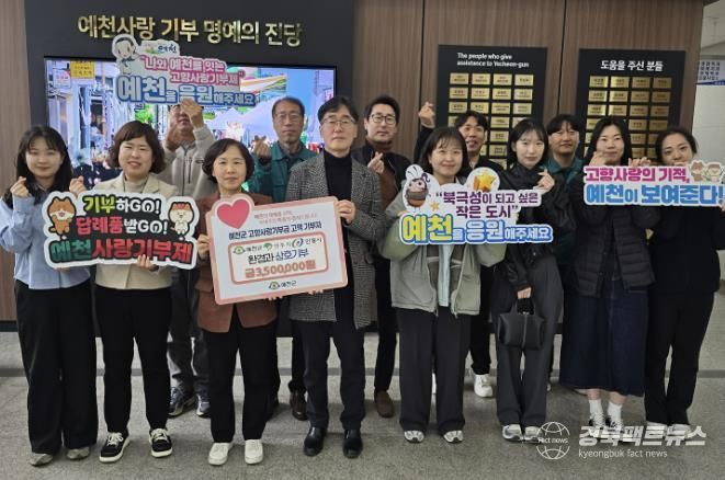 영주시·안동시 직원 35명과 예천군 환경관리과 직원 35명으로 총 70명이 참여한 이번 상호 기부는 예천군 환경관리과 직원들의 자율적인 참여 가운데 총 350만 원의 고향사랑기부금을 두 지자체에 전달하며 지역 간 응원의 뜻을 나눴다.