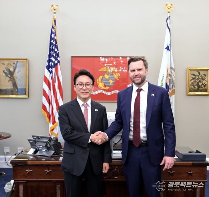 경북팩트뉴스 황혜경 기자 | 김민석 국무총리는 미국 방문 첫째 날인 3월 12일 오후, 워싱턴 D.C. 백악관에서 'J.D. 밴스(James David Vance)'미국 부통령과 회담을 가졌다. 지난 1월 밴스 부통령과의 첫 회담 이후 약 50일 만에 개최된 회담이다.