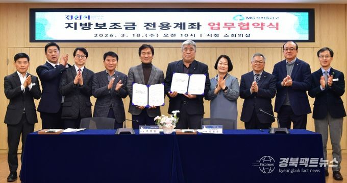 경북팩트뉴스 남유신 기자 | 경산시는 18일 시청 소회의실에서 다문새마을금고 등 관내 새마을금고가 참석한 가운데 지방보조금 전용 계좌 업무협약을 체결했다.