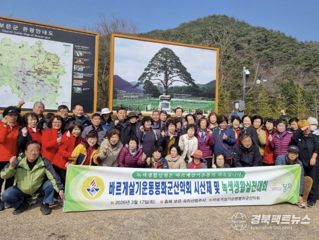 경북팩트뉴스 남유신 기자 | 바르게살기운동 봉화군협의회 산악회는 지난 17일, 산악회원 80여 명이 참석한 가운데 충북 보은 속리산 법주사에서 2026년 안전산행을 기원하는 시산제를 실시했다. 이어 참석자들은 속리산 등반을 진행하며 ‘녹색생활실천대회’를 함께 이어갔다.