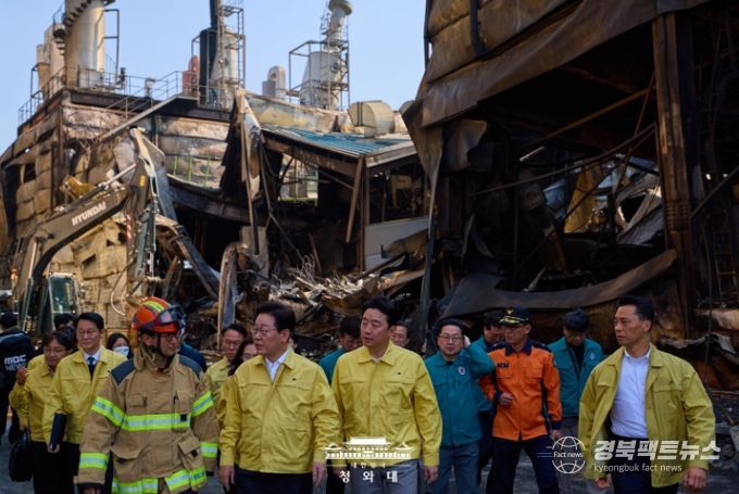 경북팩트뉴스 황혜경 기자 | 이재명 대통령은 21일 오후, 20일 대전 대덕구에서 발생한 안전공업 화재 현장을 찾아 피해 상황과 구조활동 전반을 점검하고, 유가족들의 목소리를 청취했다.