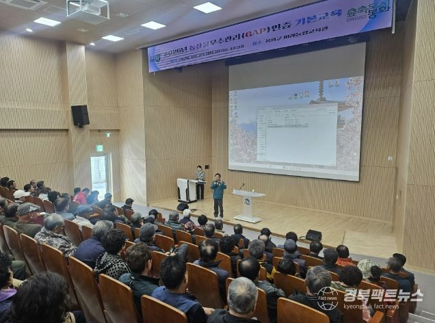 경북팩트뉴스 남유신 기자 | 봉화군은 안전한 농산물 생산에 주력하기 위해 지난 23일 신규농가 및 갱신농가 400여 명을 대상으로 미래농업교육관에서 GAP(농산물우수관리) 인증 기본 교육을 실시했다.