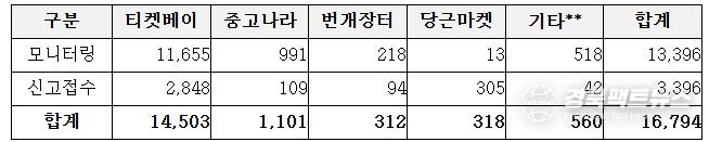 2026년 2월부터 3월까지 프로야구 암표 신고·모니터링 결과, 약 1만 6천여 건이 확인됐다. 특히 개막전(3. 28.~29.) 전후로는 정가 대비 최대 약 13배 고액 거래, 동일 계정 다량 좌석 확보 및 재판매 등 조직적 거래 정황이 다수 확인됐다. 이 중 다량·연석 판매, 과도한 웃돈 거래, 동일 계정 반복 거래 등 부정거래 의심 사례를 분석․파악해 경찰청에 수사를 의뢰했다.