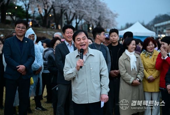 행사는 저녁 6시 보건소에서 운영하는 건강 증진 홍보 부스 설치로 시민들의 큰 호응을 얻었으며, 이어 저녁 7시 직지사천을 수놓는 경관조명 점등식이 시작되어 시민들은 환하게 불을 밝힌 벚꽃 터널 아래를 가족, 친구, 연인과 함께 걸으며 봄밤의 낭만을 즐겼다.