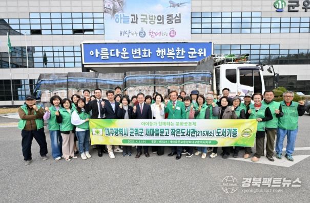 경북팩트뉴스 남유신 기자 | 군위군 새마을회는 4월 1일 군청 전정에서 국내 대표 온라인 서점 예스24와 함께 도서 후원 전달식을 개최하고, 도서 5만 2천 권을 후원받았다.