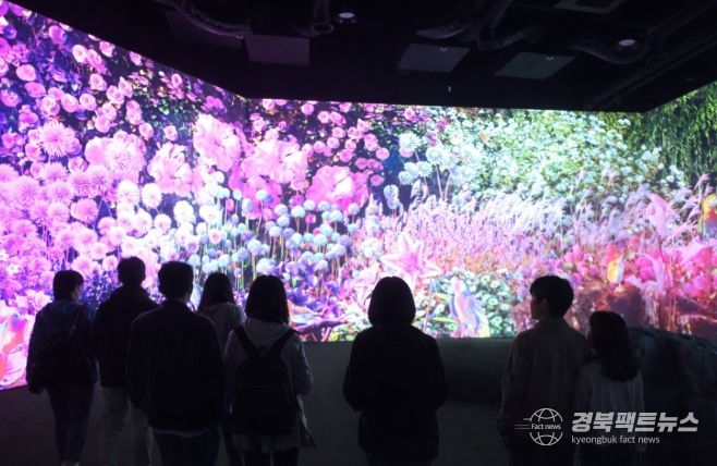 전시관은 경주 월성의 곡선을 모티프로 설계됐으며, 명화를 AI 미디어아트로 구현한 ‘빛의 갤러리’와 몰입형 디지털 정원이 어우러져 관람객의 시선을 끌고 있다.