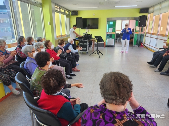 이날 봉사단은 색소폰 연주와 꽹과리 공연, 노래 등 다양한 프로그램을 진행하며 어르신들과 함께 호흡하고 즐거운 분위기를 이끌었다. 공연에 참여한 어르신들은 박수와 웃음으로 화답하며 오랜만에 활기찬 시간을 보냈다.