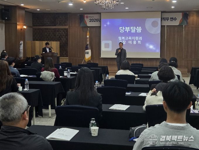 경북팩트뉴스 남유신 기자 | 경북교육청은 17일 경주시에 있는 더케이호텔경주에서 도내 교육지원청 학원・공익법인・평생교육시설 업무 담당자 60여 명을 대상으로 ‘2026년 상반기 통합 직무연수’를 개최했다고 밝혔다.